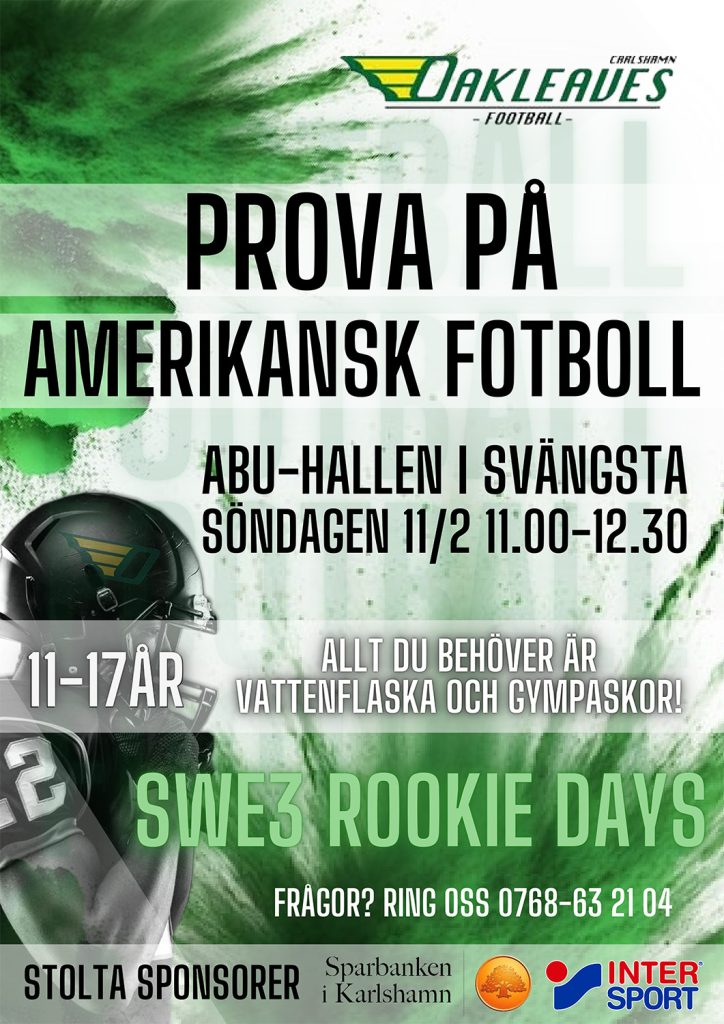 Carlshamn Oakleaves deltar i Rookie Days – se information här intill.